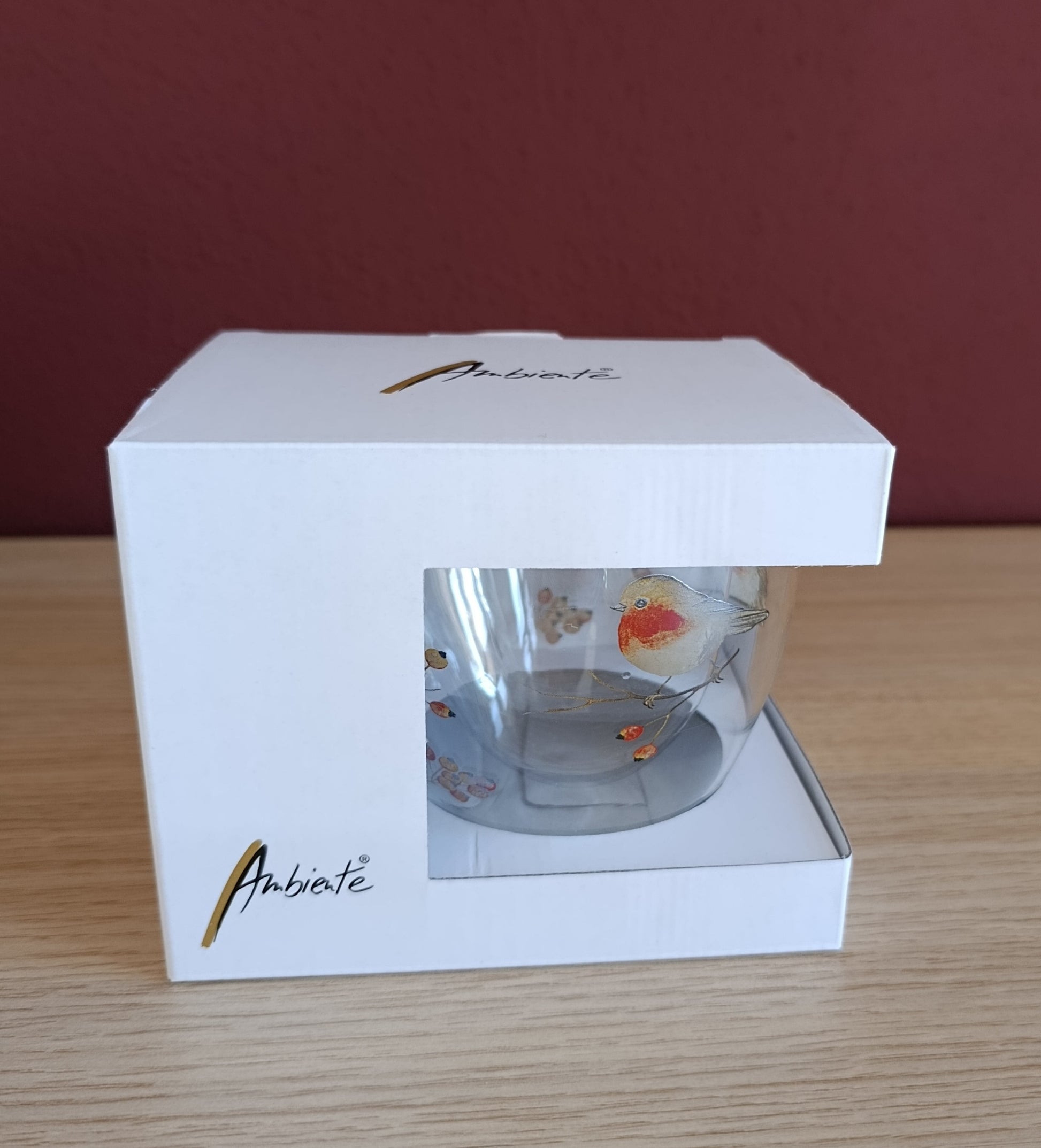 Doppelwandiges Glas mit Griff (Vögel, winterlich)