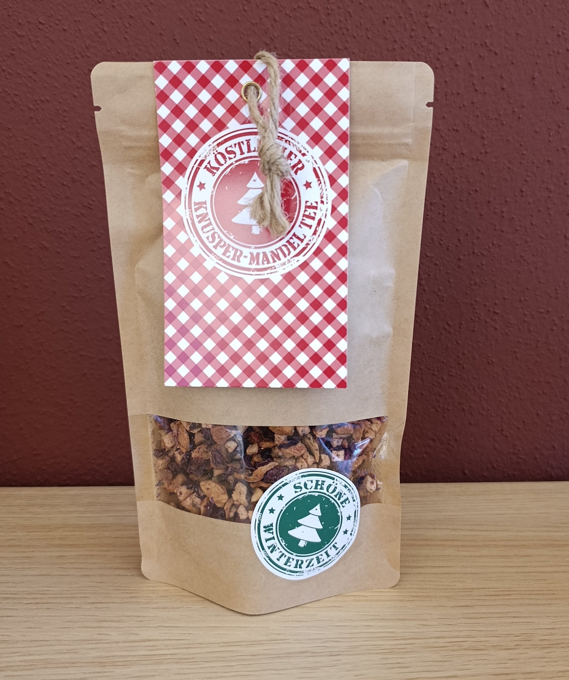 Ein himmlischer Tee für alle, die den Duft frisch gebackener Mandelplätzchen lieben! Unser Köstlicher Knusper-Mandel-Tee verführt mit einer feinen Balance aus fruchtigen und nussig-warmen Noten. Fruchtige Apfelstücke und rote Betestücke treffen auf die zarte Süße von Hibiskusblüten und Hagebuttenschalen. Das natürliche Mandel- und Krokantaroma sorgt für den unverwechselbaren „Knusper“-Geschmack, während eine Prise Zimt und Malvenblütenaroma die Mischung harmonisch abrundet.