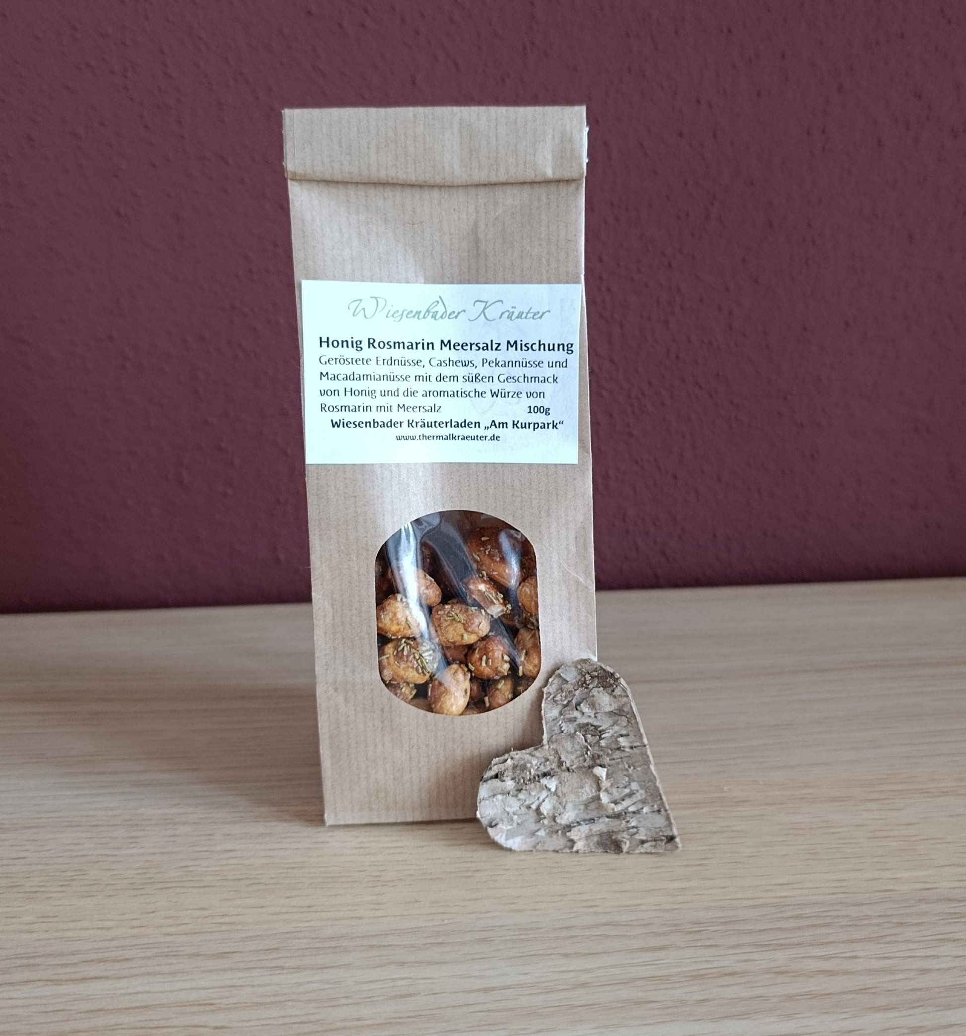 Diese besondere Nussmischung vereint das Beste aus zwei Welten: den süßen Geschmack von Honig und die aromatische Würze von Rosmarin und Meersalz. Perfekt geröstete Erdnüsse, Cashews, Pekannüsse und Macadamianüsse sorgen für einen herrlich knusprigen Genussmoment. Ideal als Snack zwischendurch, zu einem Glas Wein oder als besondere Zutat in Salaten und Käseplatten.